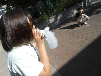 手作り大量シャボン玉作成機!? 面白い感じになっていました。