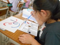図工の時間です。今日は初めて水彩絵の具を使うよう… ワクワクが伝わります♪