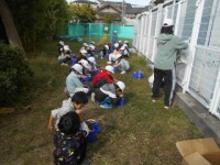 生活科の時間です。土を新たに入れた鉢植えにチューリップの球根を植えていました。
