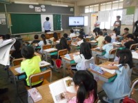 たくさんの先生が見守る中,2年2組で研究授業が行われました。