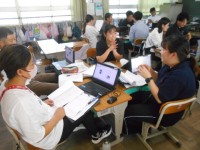 2年2組の児童が下校した後,先生たちで今日の研究授業の討議会が開かれました。