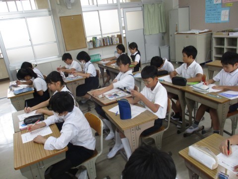 算数の授業の様子です。計算問題の答え合わせをしています。