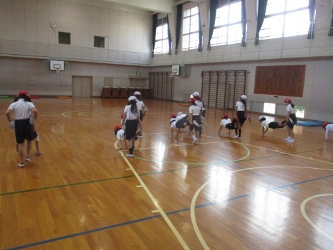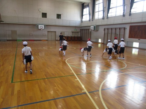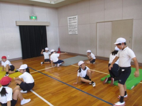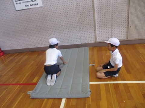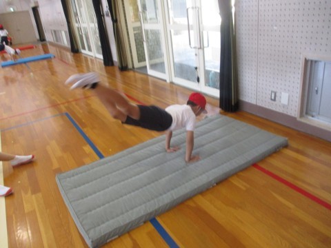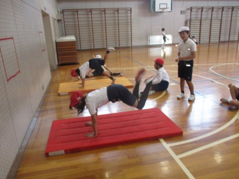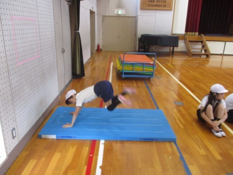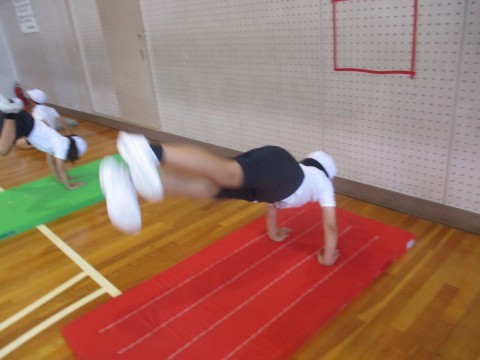 体育の授業の様子です。倒立に向けて練習を重ねています。