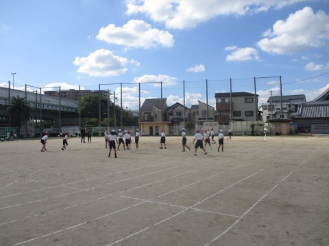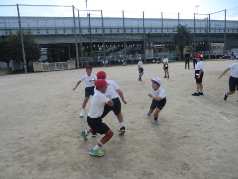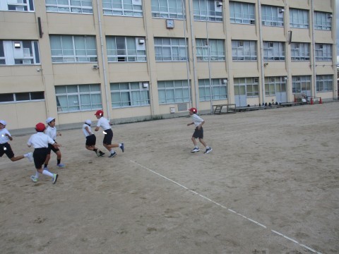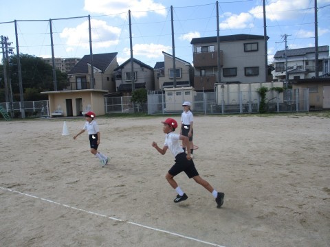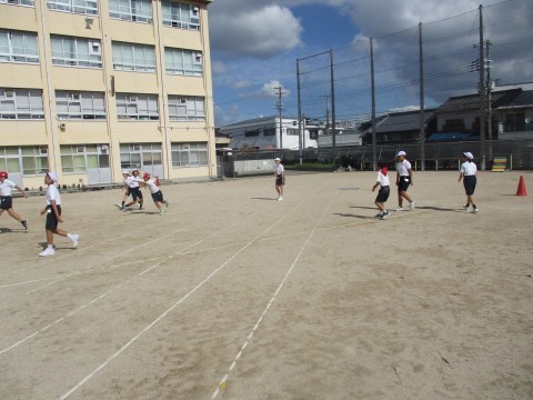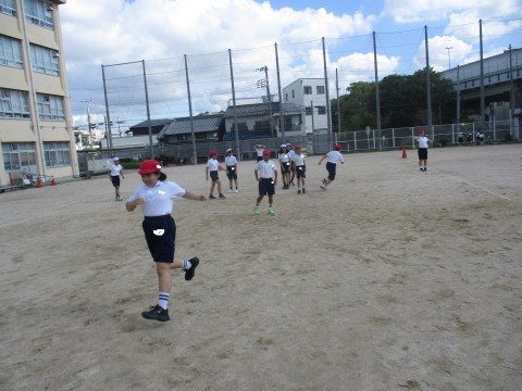 体育の授業の様子です。久しぶりの運動場での体育でした。たくさん走り・体を動かしています。