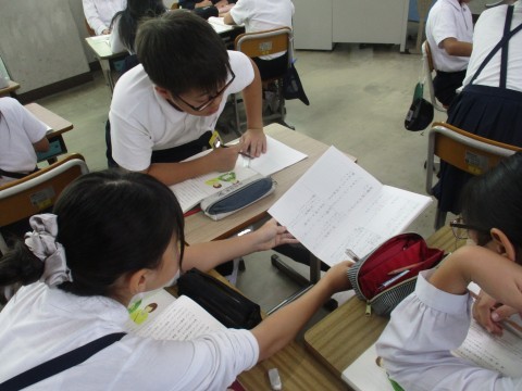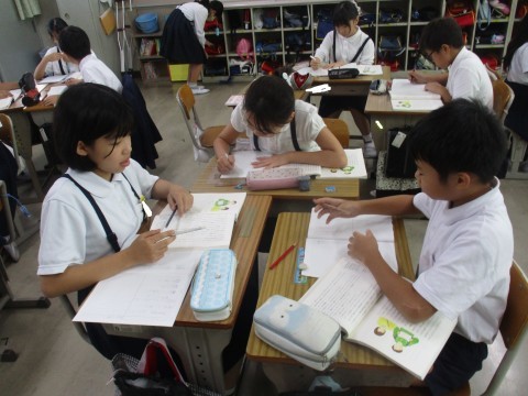 国語の授業の様子です。たずねびとを読み進め、心情をみんなで共有しています。