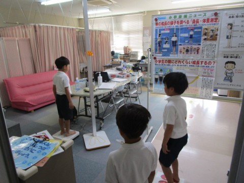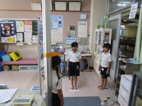 お話の後は身長・体重を測りました。結果は来週の視力検査結果と合わせて配付します。