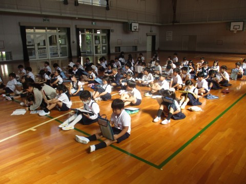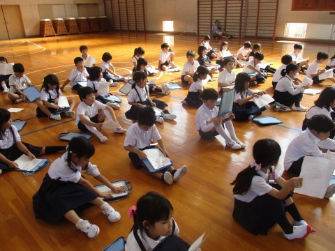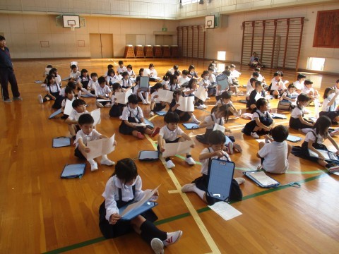 今日は1・2年生で来週行われる校外学習の説明会に参加しました。約束をしっかり守りみんなで仲良くしましょう。