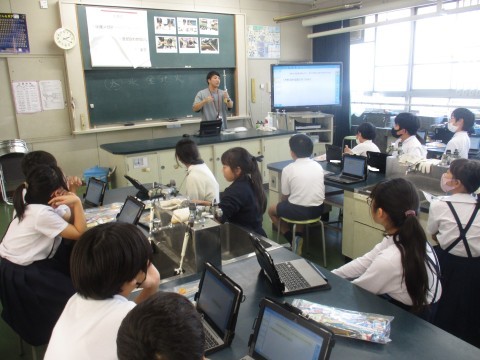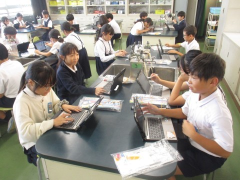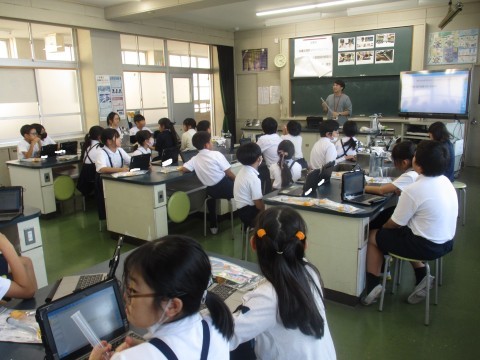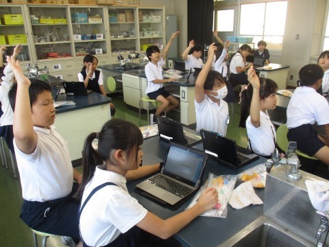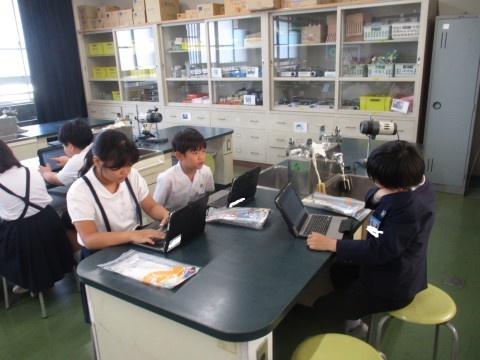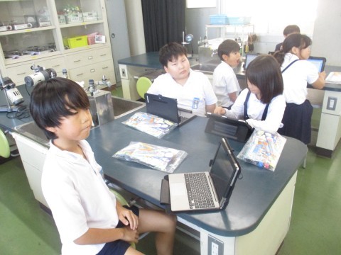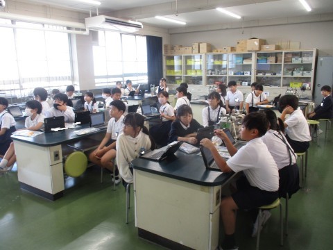 理科の授業の様子です。理科室で実験をしました。意欲的に取り組んでいますね。