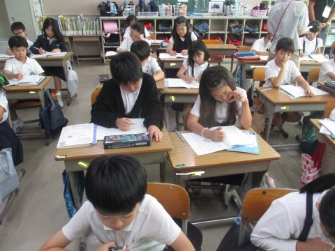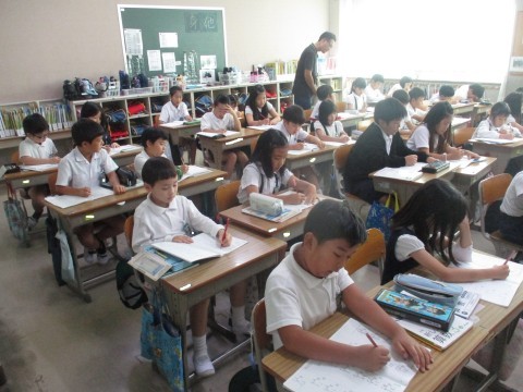 算数の授業の様子です。計算の答え合わせをみんなでしました。