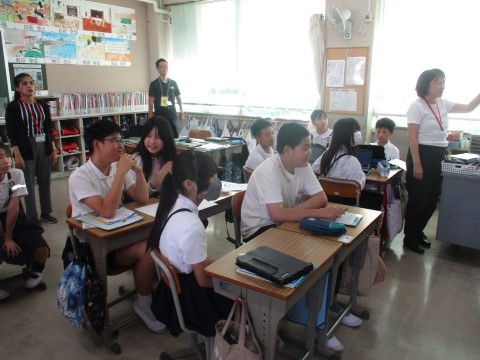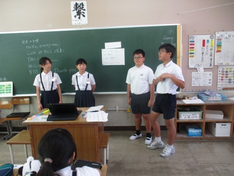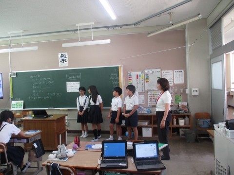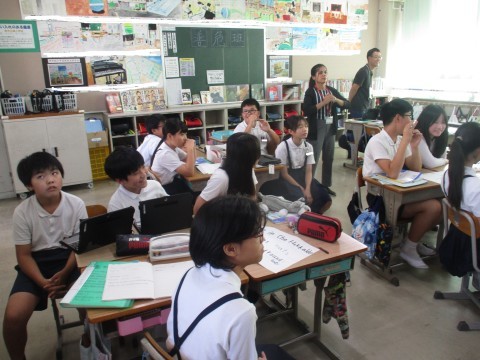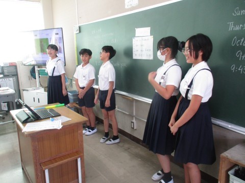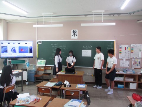 外国語の授業の様子です。動物の環境問題について調べ、英語で発表しました。
