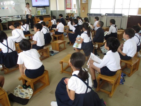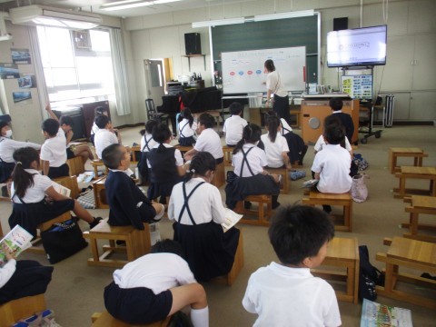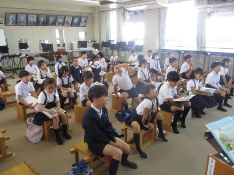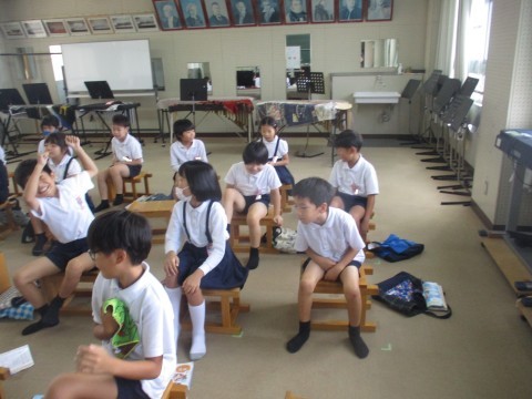 音楽の授業の様子です。行進曲のリズムをみんなで確認しました。楽しくできましたね!