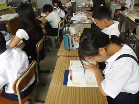 算数の授業の様子です。柱状グラフについて学びました。