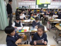 低学年は歩道の歩き方や信号のある交差点,ない交差点のわたり方など交通ルールやマナーについて教えてもらいました。