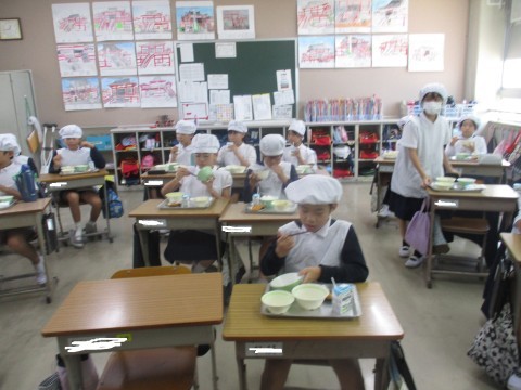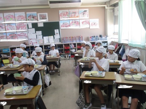 給食の時間の様子です。今日の一番人気は白身魚のフライでした。おいしくいただきました。