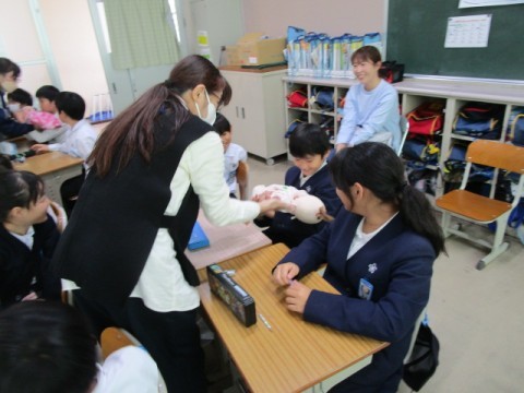 助産師さんと保健師さんにきてもらい,いのちの授業を行いました。