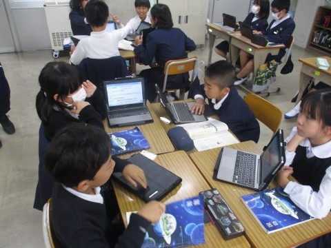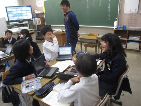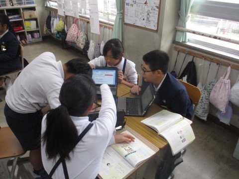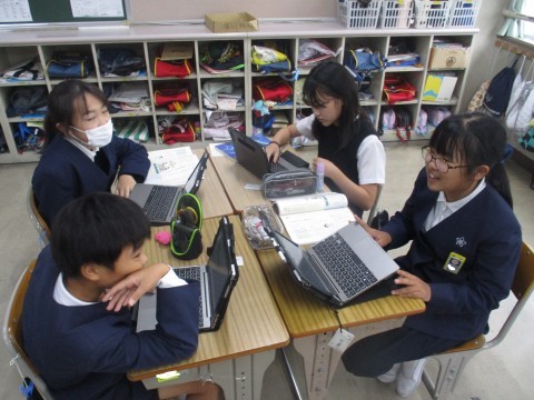 国語の授業の様子です。「より良い学校生活のために」をテーマにグループで話し合いました。