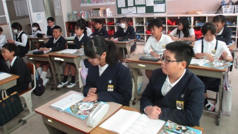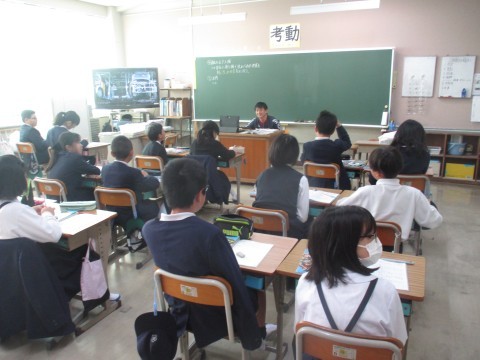 社会の授業の様子です。自動車工場の仕事について学びました。