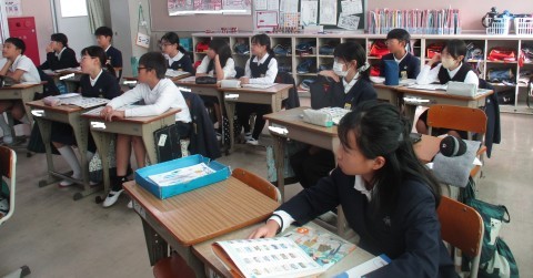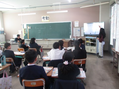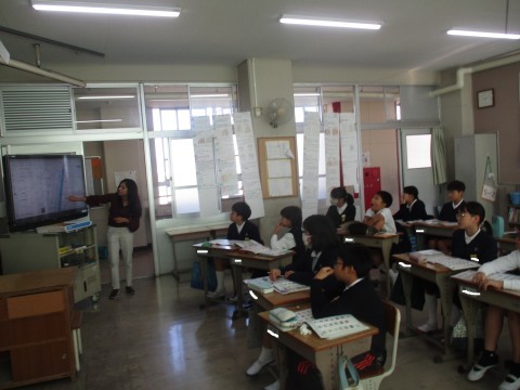 外国語の授業の様子です。目的地までの案内について、みんなで英語で話しました。