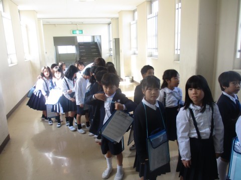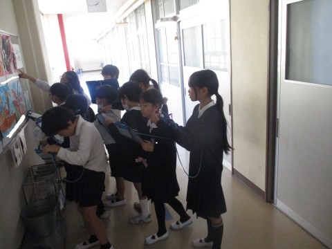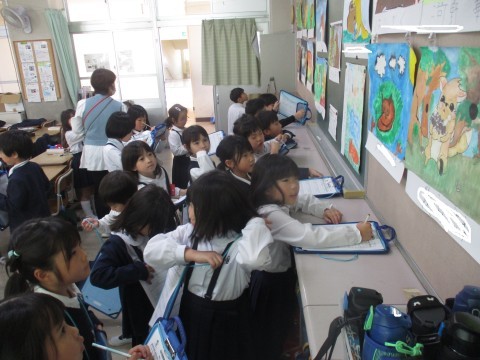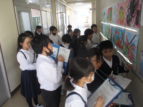 今日の5時間目は校内図画展が開催されました。1年生から6年生までの作品を順番に見学しました。下級生が上級生の作品を見て「すごいなあ!どうやって書くのだろう?」など聞かれました。上級生からは「色づかいがきれい!すごいアイディア!」など聞かれました。