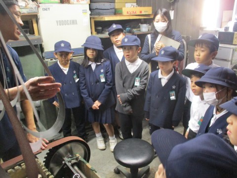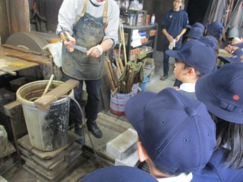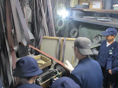 馬場刃物さんで刃物を研ぐところを見せていただきました。また、実物の刃物を見せていただきご説明してもらいました。お忙しい中ありがとうございました。