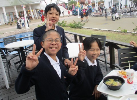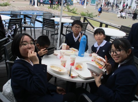 グループで仲良く昼食をとっています。午後も楽しく行動していきましょう!