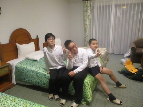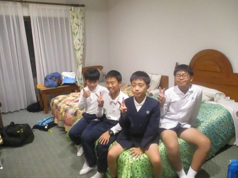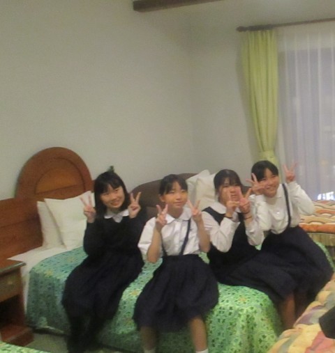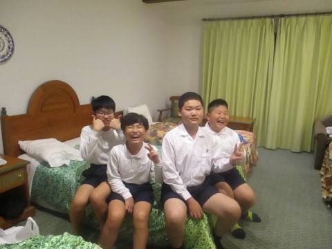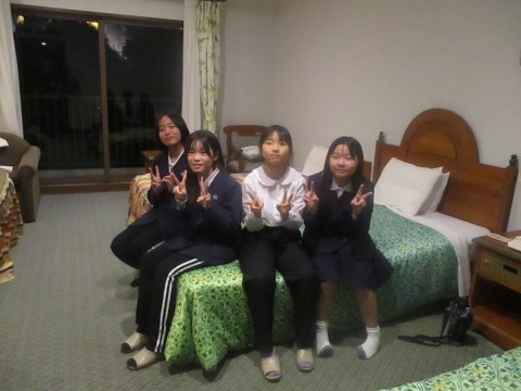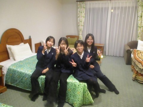 班で部屋に入り寝る場所を楽しく決めています。