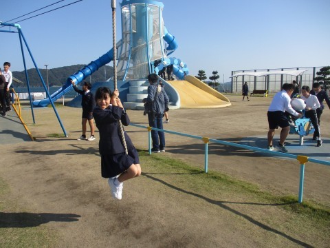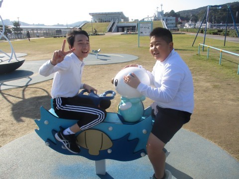 これから鳥羽湾めぐりに向かいます。待ち時間に公園で遊びました。