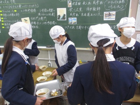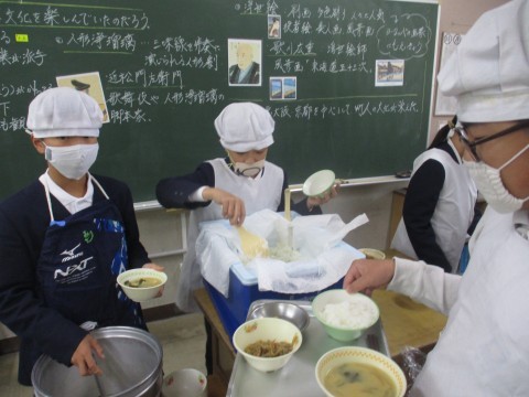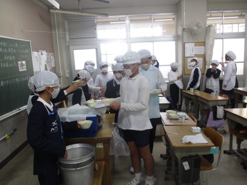 給食の時間の様子です。みんなで協力して準備を進めています。