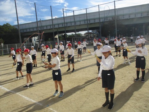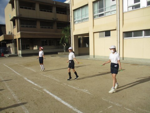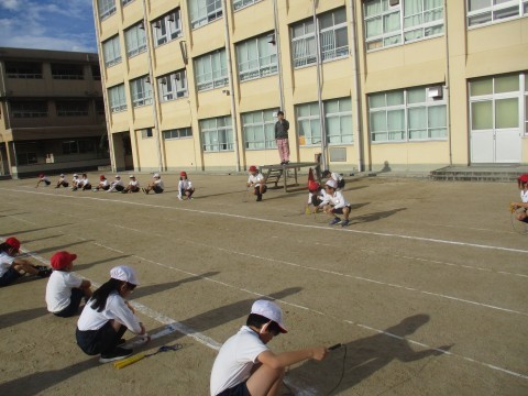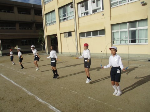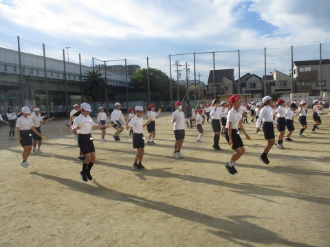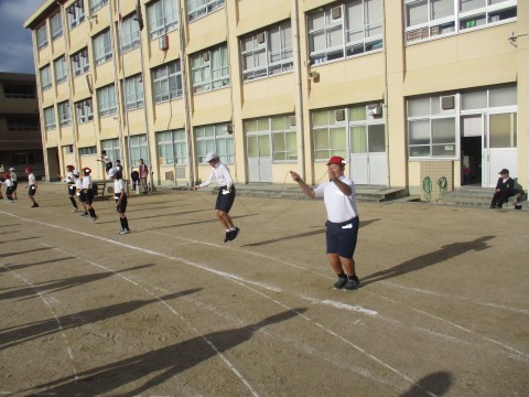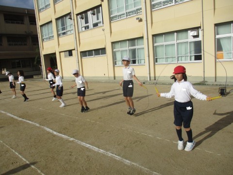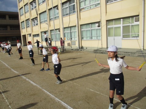 今日からなわとび朝礼です。保健体育委員のみなさんが中心となって取り組んでいます。