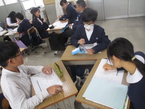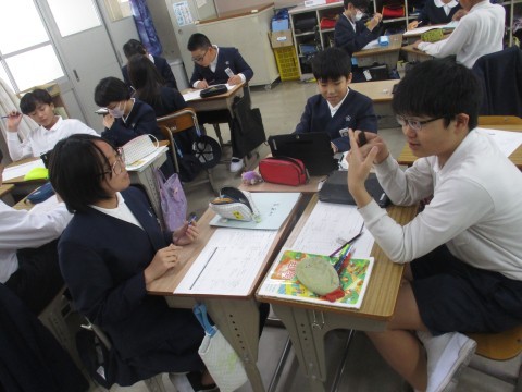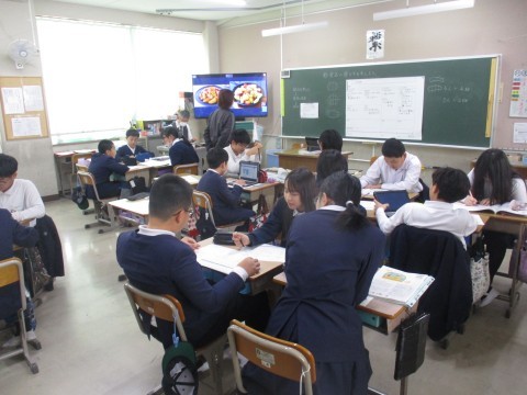 家庭科の授業の様子です。調理実習に向けて準備を進めています。ジャーマンポテトを作る予定です。