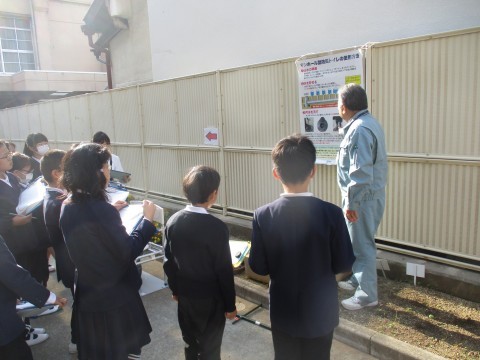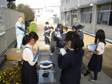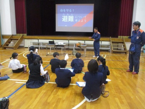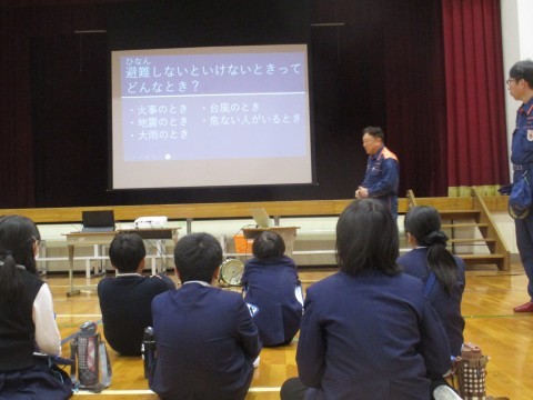 自治推進課の方にご来校いただき、防災学習を行っていただきました。みんな真剣な表情でお話を聞いています。