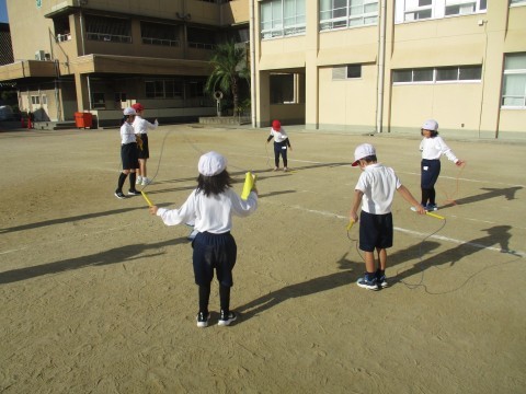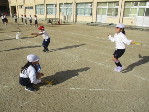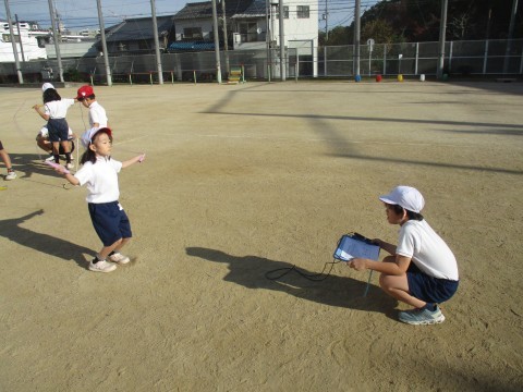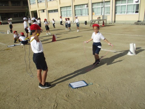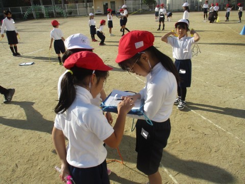 4年生が1年生に分かりやすく教えてくれたり、手本も見せてくれました。