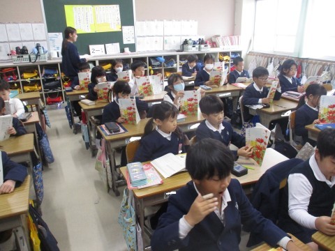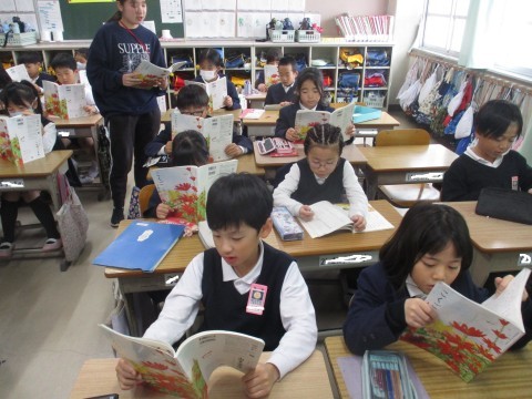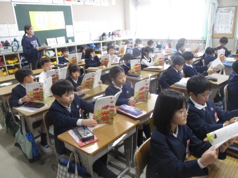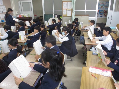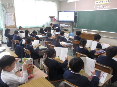 国語の授業の様子です。「みきのたからもの」を読み進めています。しっかり音読できていますね。