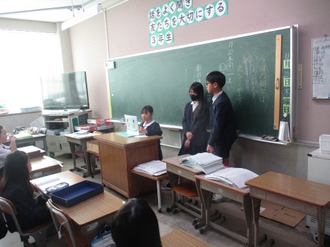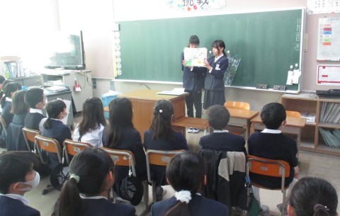 今日の朝の活動時間は、図書委員がクラスに行き、本の読み聞かせをおこないました。みんな集中して聞いていました。