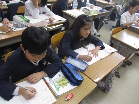算数の授業の様子です。1㎝より短い長さをcmであらわしました。