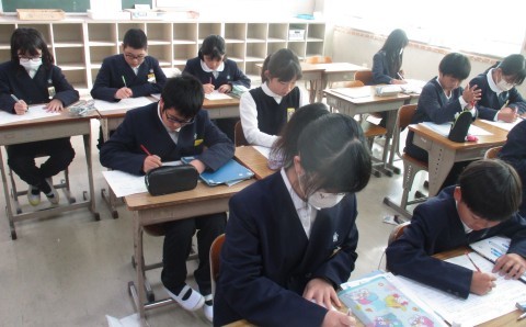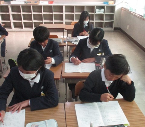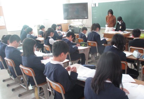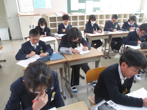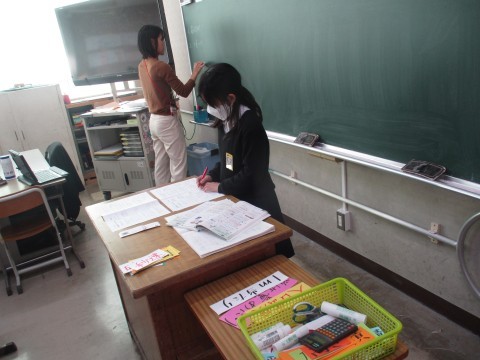 算数の授業の様子です。単位量あたりの大きさのプリントの答え合わせをみんなでおこないました。