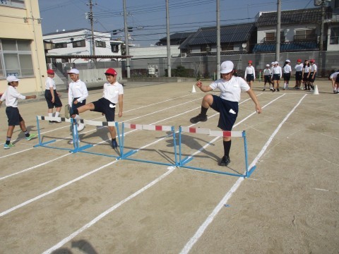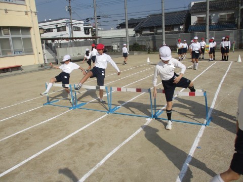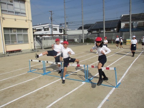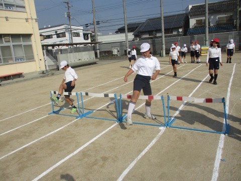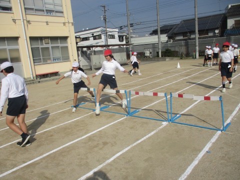 体育の授業の様子です。ハードル走をおこないました。先生からのアドバイスを聞いてフォームも固まってきました。