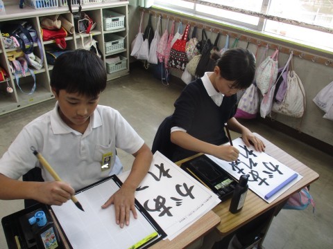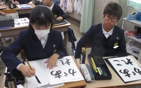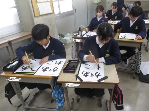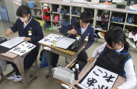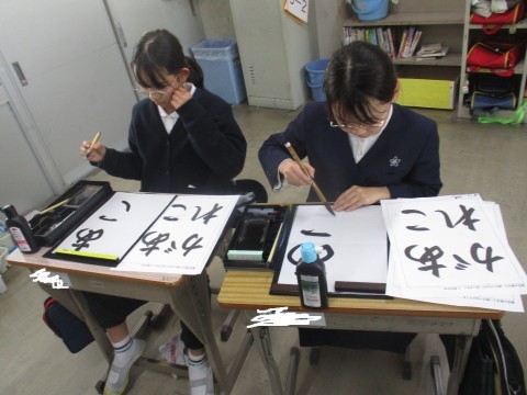 書写の授業の様子です。落ち着いて集中して取り組めました。