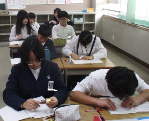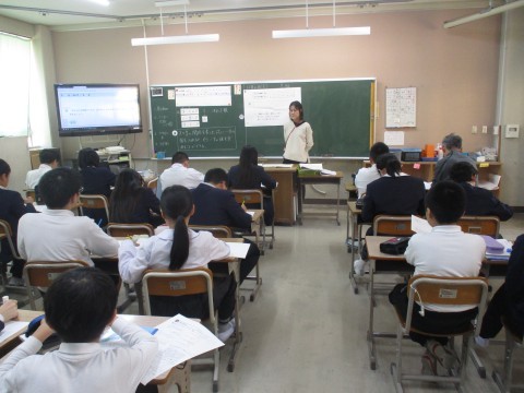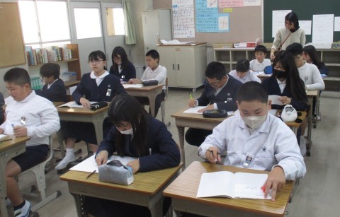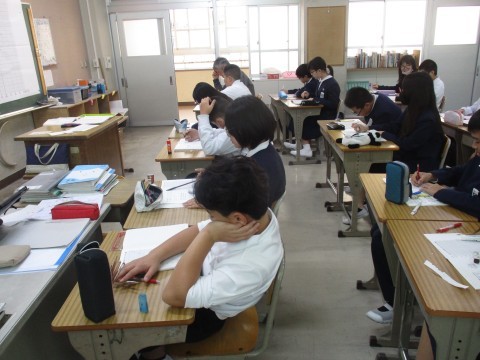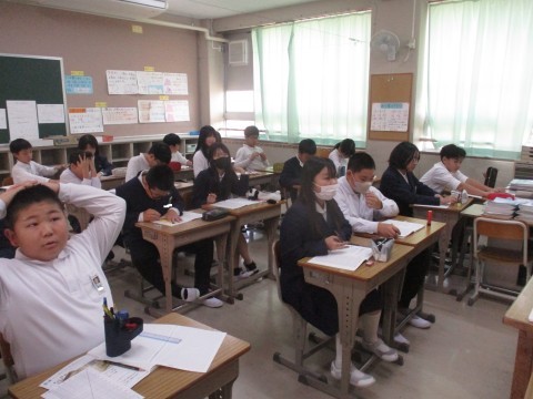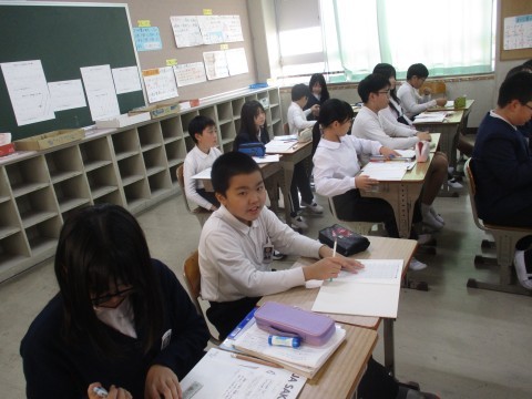 算数の授業の様子です。比例する2つの数量をグラフに表して特徴を調べました。