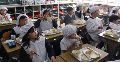 給食の時間の様子です。今日は給食の時の正しい姿勢や食べ方の動画を見ました。