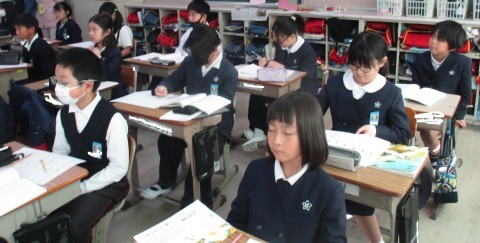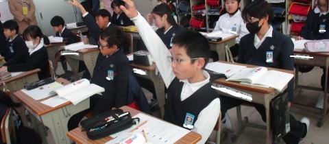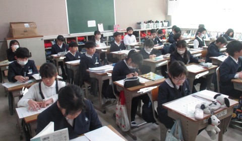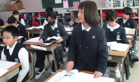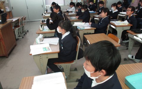 国語の授業の様子です。友情のかべ新聞で推理とつながっている場面を発表しました。