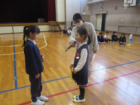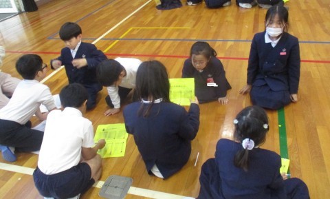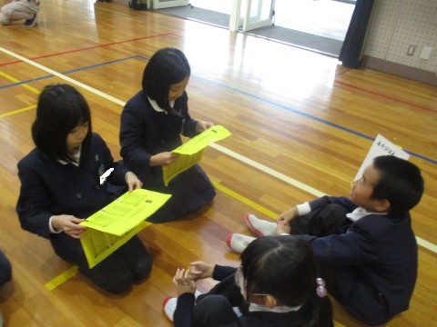 2年生が暗記した九九を3年生が先生役となって点検・アドバイスをしてくれました。とても仲良くできていて素晴らしいですね!