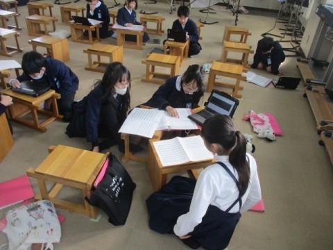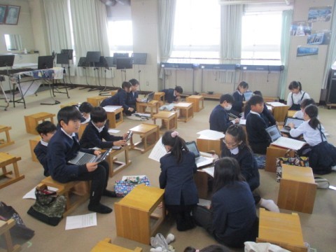 4年生は音楽の学習で合奏の準備をしていました。今日は合奏のパートを決めるオーディションをしたり,決まったパートの練習をPCを使ってしていました。