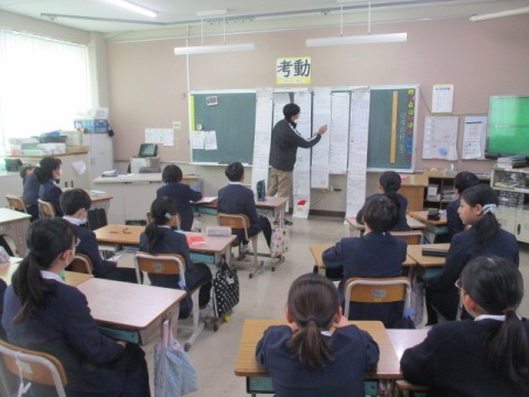 5年1組は社会の学習でこれからの工業生産について学習していました。今は生産効率をあげるために生産者の労働環境にも気をつかっていることを学んでいました。