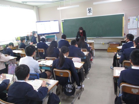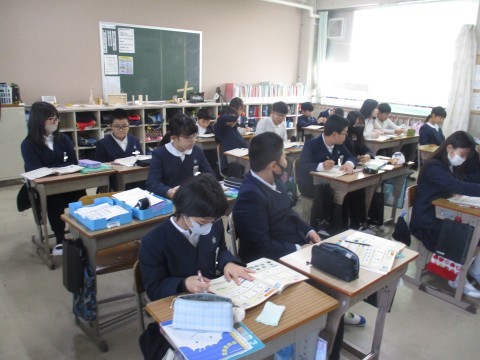 外国語の授業の様子です。みんなで英語でクイズを考え回答しました。