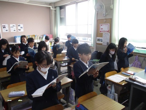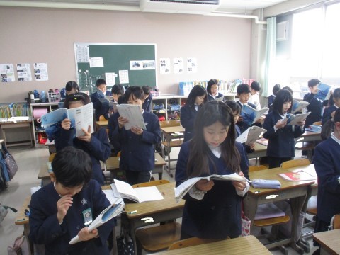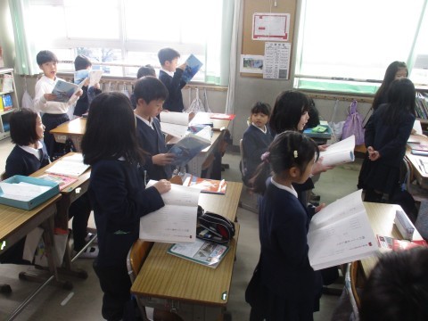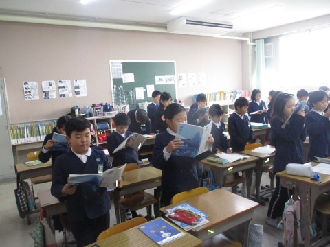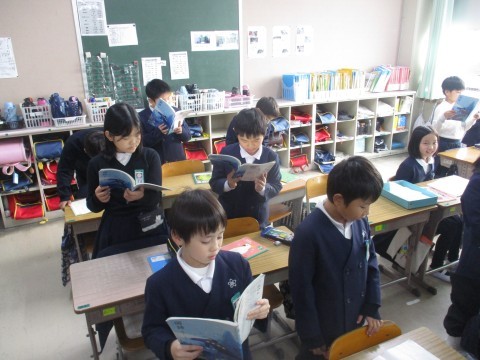 国語の授業の様子です。「たいこ」(谷川俊太郎)をみんなで音読しました。