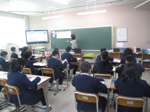 算数の授業の様子です。三角形の高さを変えていくと、面積はどのように変化するか調べました。