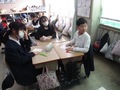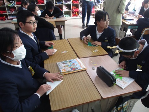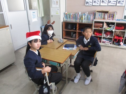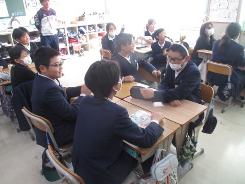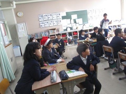 外国語の授業の様子です。英語でクリスマスに関するゲームをグループでおこないました。