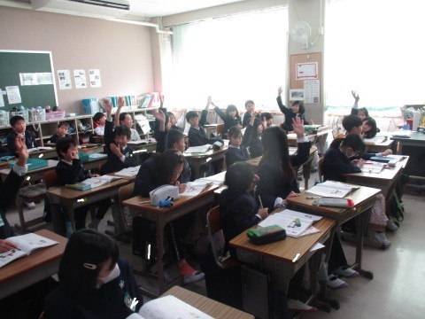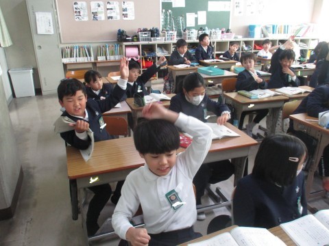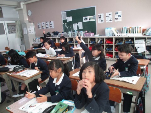 国語の授業の様子です。音読み・訓読みを理解し発表しました。