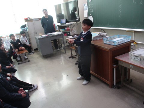 今日は2学期の最後にみんなでお楽しみ会をしました。みんなの前で手品をしてくれました。
